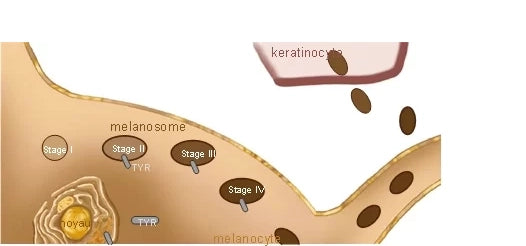 Another solution is to stimulate the synthesis of melanin by melanocytes in the hair and activate the key enzyme in melanogenesis, tyrosinase. This requires the stimulation of pigmentation pathways, in particular by enhancing certain factors such as MITF, TYRP1 and CREB, which are strongly involved in this process. It is also necessary to promote communication between the melanocytes of the hair follicles and the keratinocytes that produce hair, via dendrites, which facilitates the transfer of melanin from melanocytes to keratinocytes.