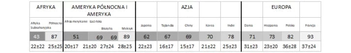 Table 1 shows the prevalence and intensity of gray hair by geographic area at comparable ages. It should be noted that sub-Saharan and African-American populations have the lowest prevalence of gray hair of all populations studied. In contrast, North Africans (87%), Mexicans (89%), Caucasians (85%), Russians (84%), Poles (82%), French (93%), and Lebanese (91%) are among the groups with the highest prevalence. Asian populations are at both ends of the spectrum, with the Japanese having the lowest prevalence, while Koreans and Chinese have the highest. Indians are ranked at a similar level to European populations.