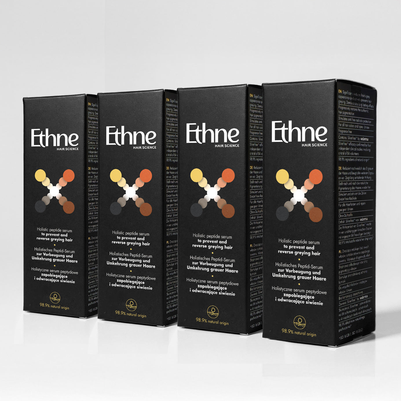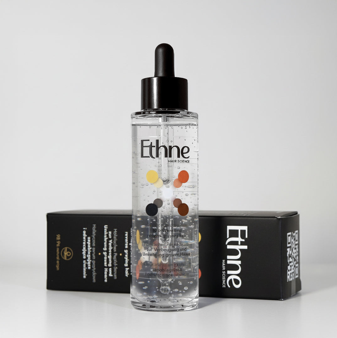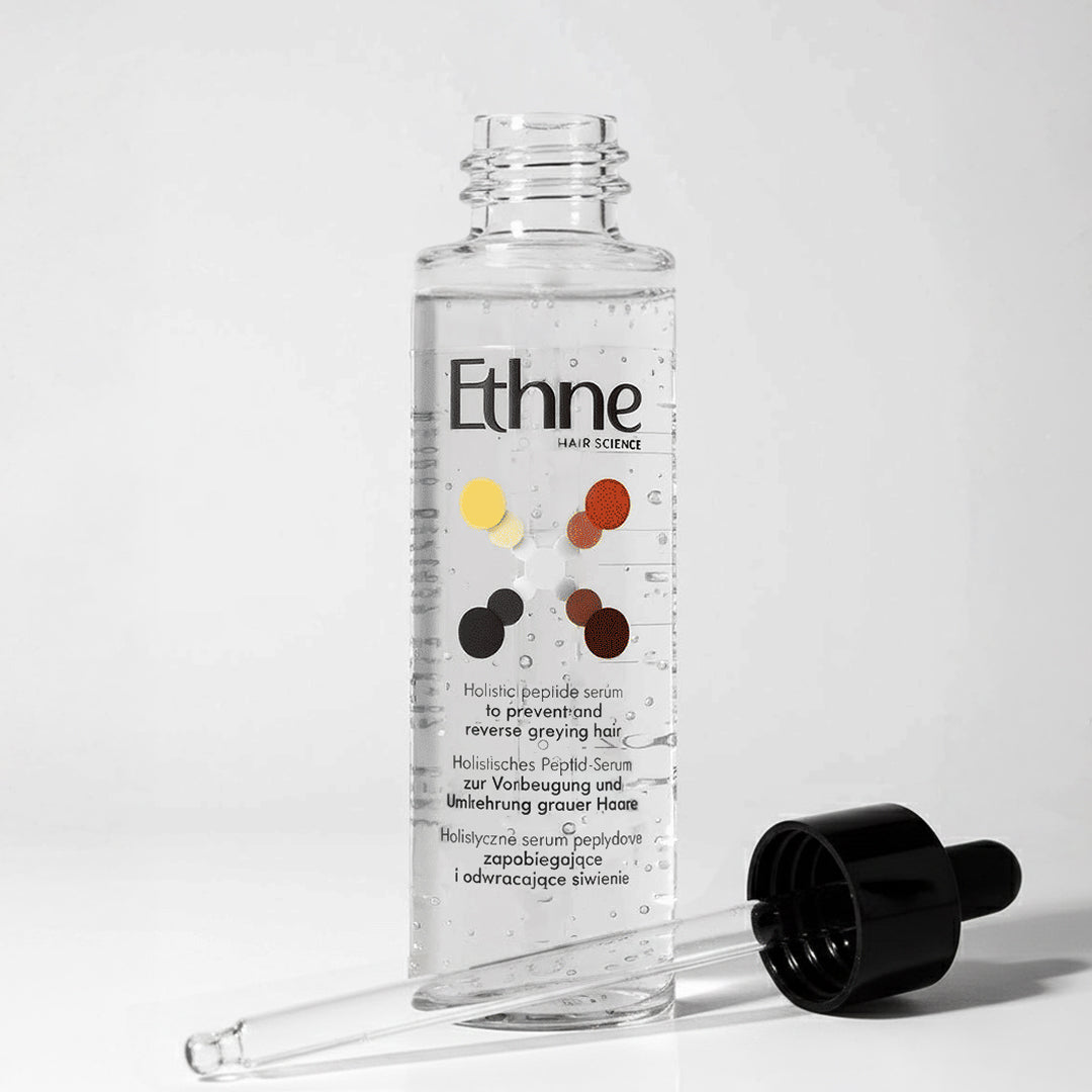 Serum ETHNE odmładza włosy i przywraca naturalną pigmentację włosów od nasady.